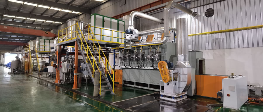 ▲用途: 波纹板催化剂的涂覆、干燥、煅烧; 产品种类: DNX系列波纹板催化剂; 特点: 1)整个生产过程采用计算机管理及监控; 2)生产过程自动化; 3)SPC监控; 4)节能工艺; 5)可视化生产; 6)产线管理系统(MES);